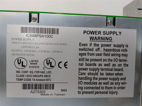 - Calculate the total power consumption of all modules planned for the chassis (CPU, I/O, comms). Ensure the IC698PSA100‘s rated output power exceeds this total with a safe margin (typically 20-30%).